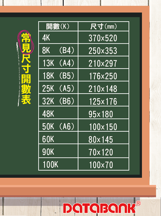 紙張的介紹 - 開數表